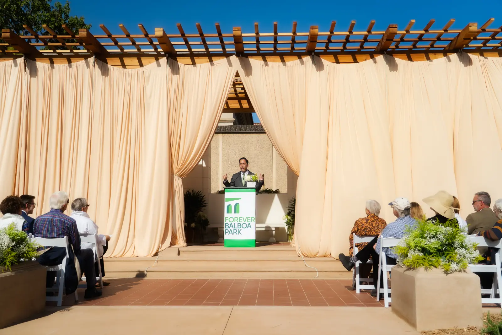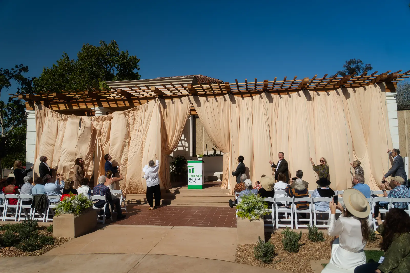 On Friday, April 10, Forever Balboa Park invited civic leaders, supporters, and members of the Balboa Park community to celebrate the completion of the Central Gardens, and reveal the reconstructed historic pergola.